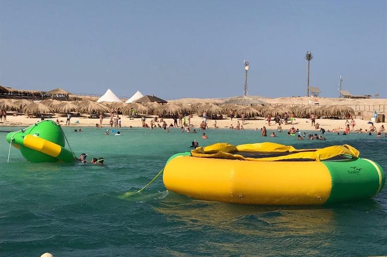 Nach Ihrer Ankunft auf der Paradiesinsel entspannen Sie auf dem weichen, weißen Sandstrand, der zum Nachdenken und Erholen einlädt. Hier können Sie dem Alltagsstress entfliehen und die Ruhe und Stille der malerischen Natur der Insel genießen. Genießen Sie die sanfte Meeresbrise, die Ihr Gesicht und Ihr Haar streichelt und Ihr Gefühl von Wohlbefinden und Entspannung steigert. Erleben Sie ein unvergessliches Erlebnis inmitten bezaubernder Natur. Machen Sie wunderschöne Erinnerungsfotos von Ihren glücklichen Momenten auf der Insel und teilen Sie sie mit Familie und Freunden, um Freude und Glück zu verbreiten. Genießen Sie nicht nur die Schönheit des Strandes, sondern tauchen Sie auch in die bezaubernden Tiefen des Roten Meeres ein und entdecken Sie seine verborgenen Schätze. Es erwartet Sie eine Welt voller farbenfroher Meeresbewohner und vielfältiger Korallenriffe, die ein unvergleichliches Naturwunder bilden. Schwimmen Sie mit farbenfrohen Fischen, die anmutig und harmonisch um Sie herumschwimmen, und beobachten Sie verspielte Delfine beim Springen und Spielen im Wasser. Erkunden Sie außerdem faszinierende Meereshöhlen und Grotten, die unzählige Geheimnisse und Geschichten bergen. Für dieses einzigartige Erlebnis stellen wir Ihnen die gesamte notwendige Tauchausrüstung zur Verfügung, darunter Masken, Schläuche, Flossen und Schwimmwesten, um Ihre Sicherheit und Ihren Komfort bei der Erkundung der bezaubernden Unterwasserwelt zu gewährleisten. Um Ihre Reise noch angenehmer und komfortabler zu gestalten, bieten wir Ihnen ein köstliches und abwechslungsreiches Mittagessen im Inselrestaurant mit Meerblick an. Genießen Sie hier köstliche lokale und internationale Gerichte, zubereitet von unseren erfahrenen Köchen. An der Strandbar finden Sie außerdem eine Auswahl an Snacks und erfrischenden Getränken für jeden Geschmack und Bedarf. Genießen Sie außerdem die beruhigende Musik und die wunderbare Atmosphäre, die Ihrem Inselerlebnis noch mehr Charme und Schönheit verleihen. Genießen Sie den warmen Sonnenschein und den atemberaubenden Meerblick, der diese Reise zu einem unvergesslichen Erlebnis macht. Um 15:30 Uhr verabschieden wir uns von der wunderschönen Paradiesinsel und treten mit unvergesslichen Erinnerungen und einzigartigen Erlebnissen unsere Rückreise nach Hurghada an. Nach Ihrer Ankunft im Hafen werden Sie bequem und sicher zu Ihrem Hotel zurückgebracht, um sich auszuruhen und auf neue Abenteuer in dieser charmanten Stadt vorzubereiten. Wir hoffen, Sie haben diese angenehme Reise genossen und nehmen die schönsten Erinnerungen an die Paradiesinsel und das Rote Meer mit und besuchen uns bald wieder, um die Schönheit der Natur und ihren unvergleichlichen Charme zu genießen.